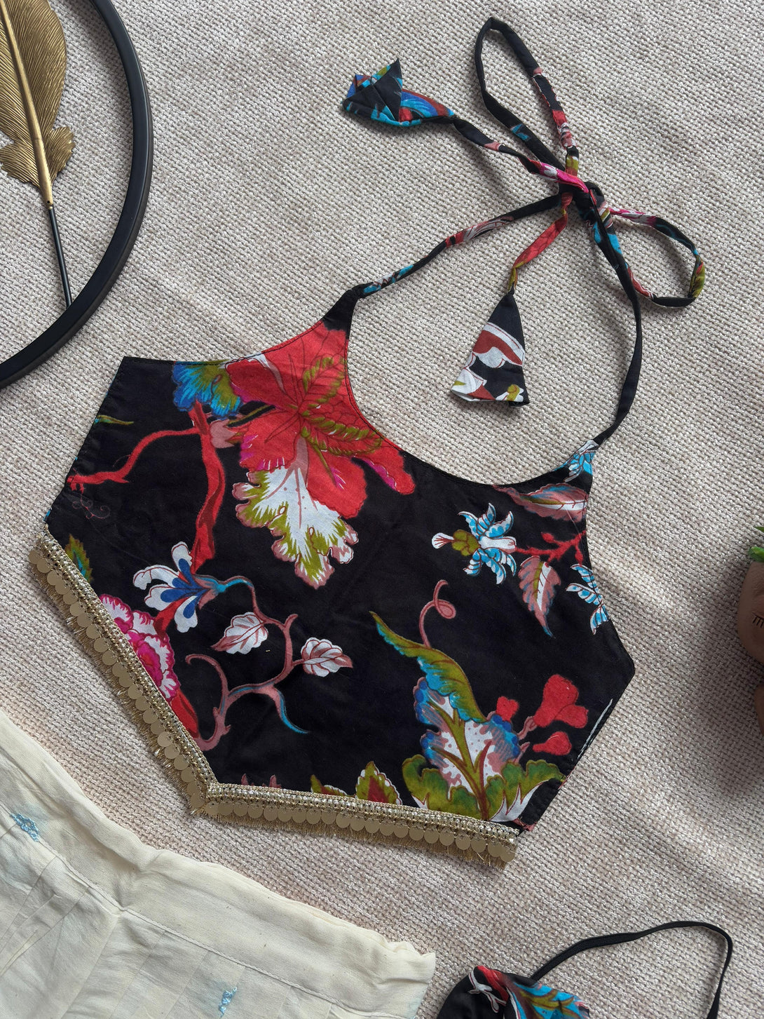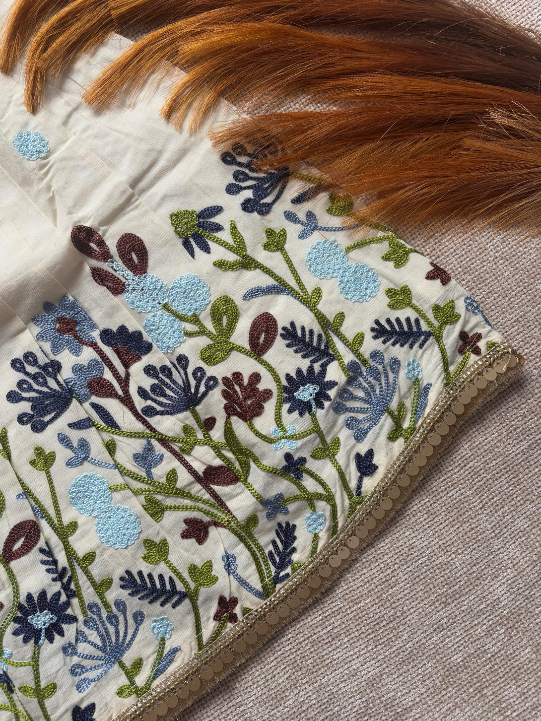 Black Floral Top & White Embroidered Skirt Co-ord Set with Headband
