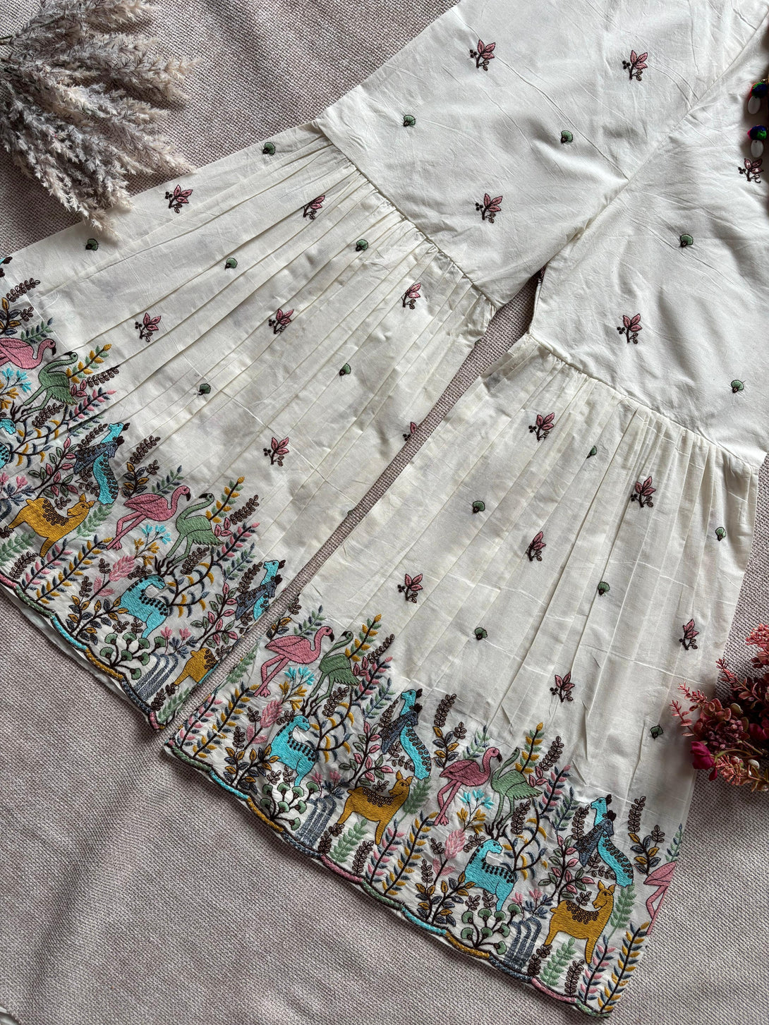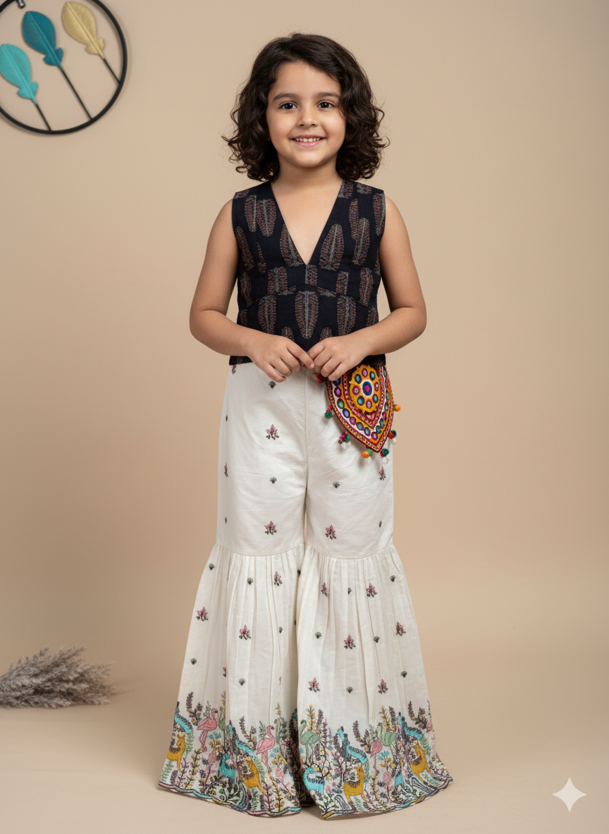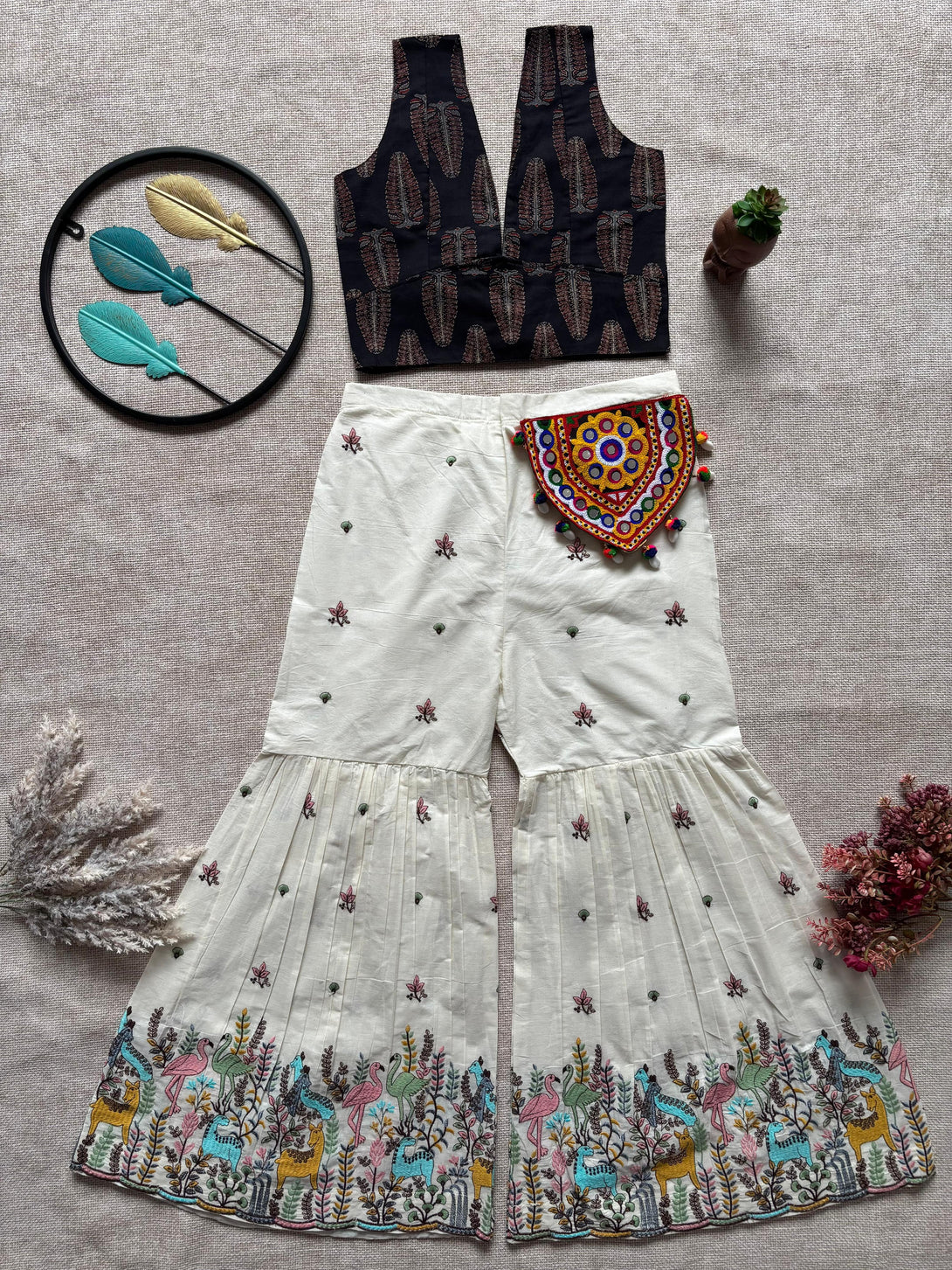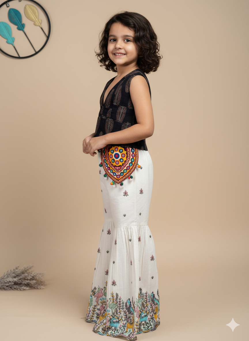 Boho Embroidered Co-Ord Set with Mirror Work Waist Pouch