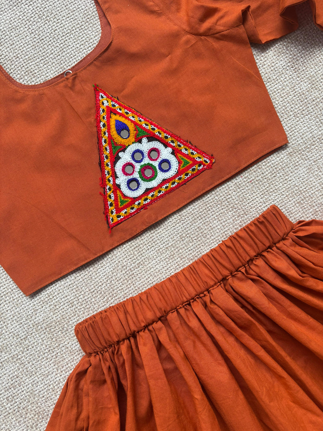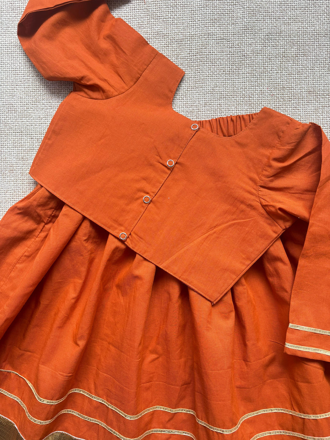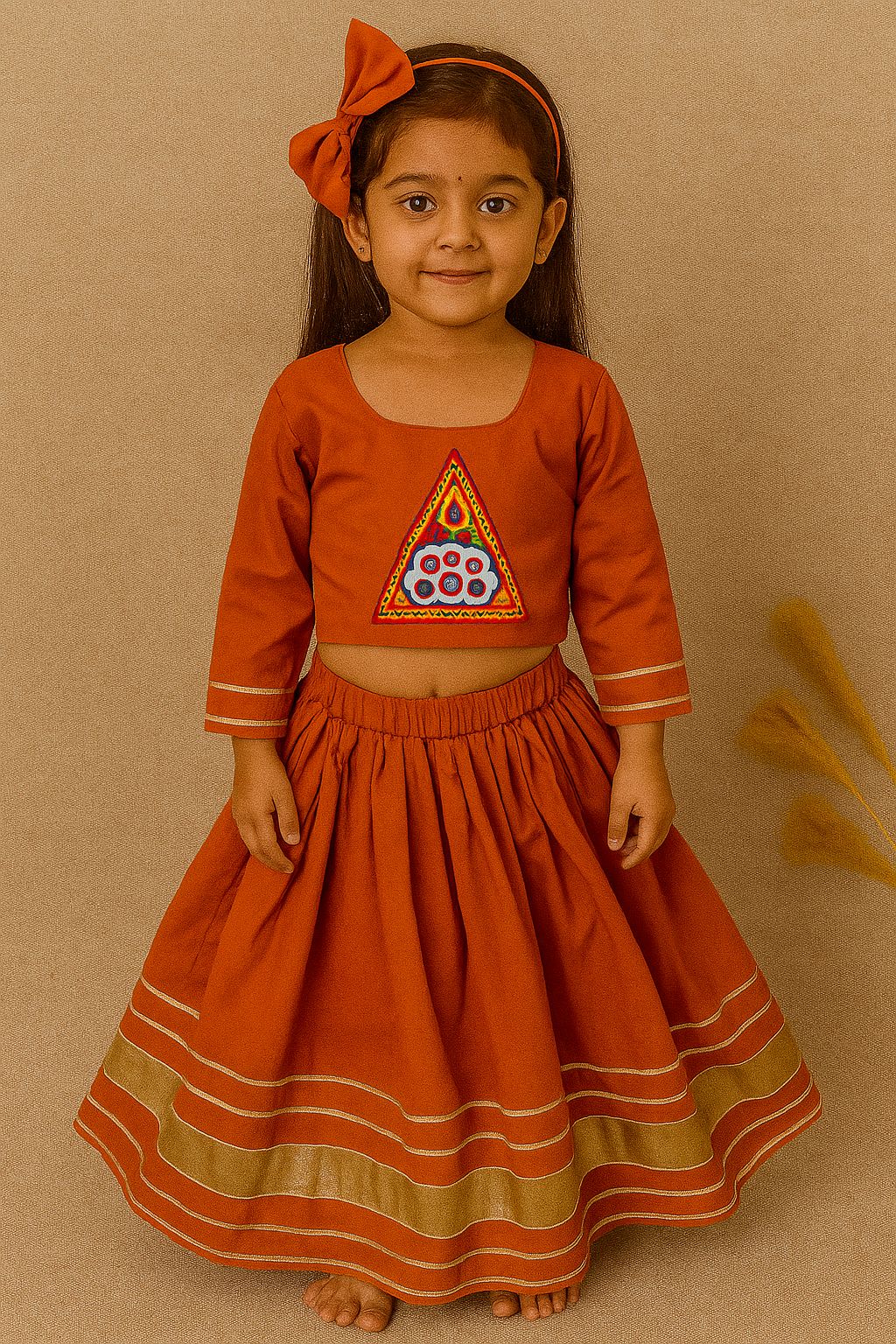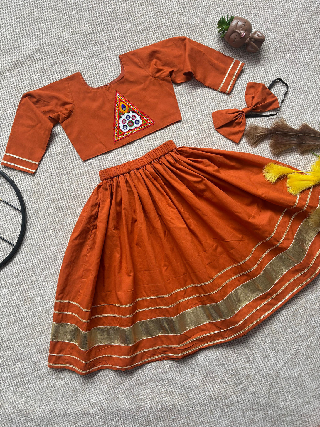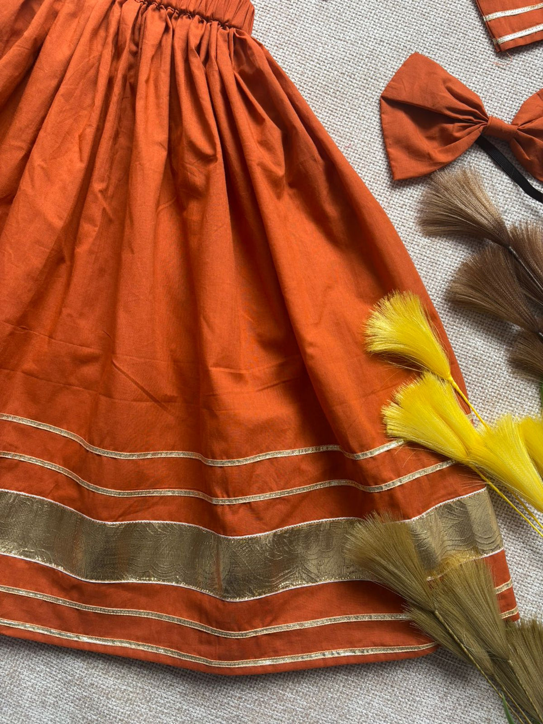Rust Orange Traditional Lehenga Choli Set with Headband